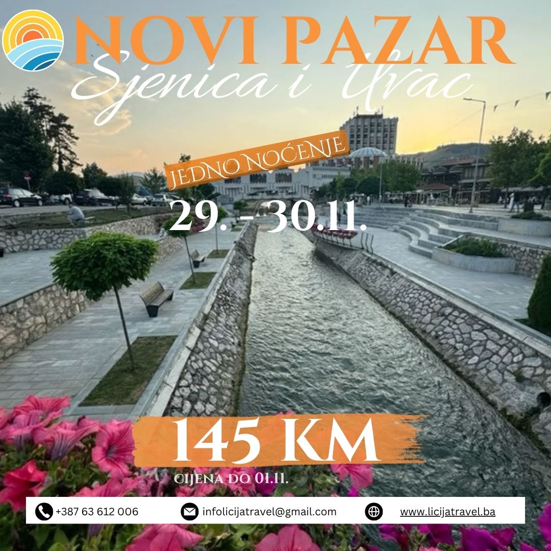 POLAZAK: 29.11. 2025. POVRATAK: 30.11.2025. 1.DAN 29.11.2025. (subota) SREBRENIK – LUKAVAC-TUZLA- BANOVIĆI – NOVI PAZAR Polazak grupe iz Srebrenika u 01:30h, iz Lukavca u 02:00, Tuzle 02:20, Živinica u 02:45h, Banovića u 03:00 h, Kalesija 03:45 h. Vožnja turističkim autobusom kroz BiH i Srbiju uz kraće pauze po potrebi grupe. Noćna vožnja. Dolazak u Sjenocu…