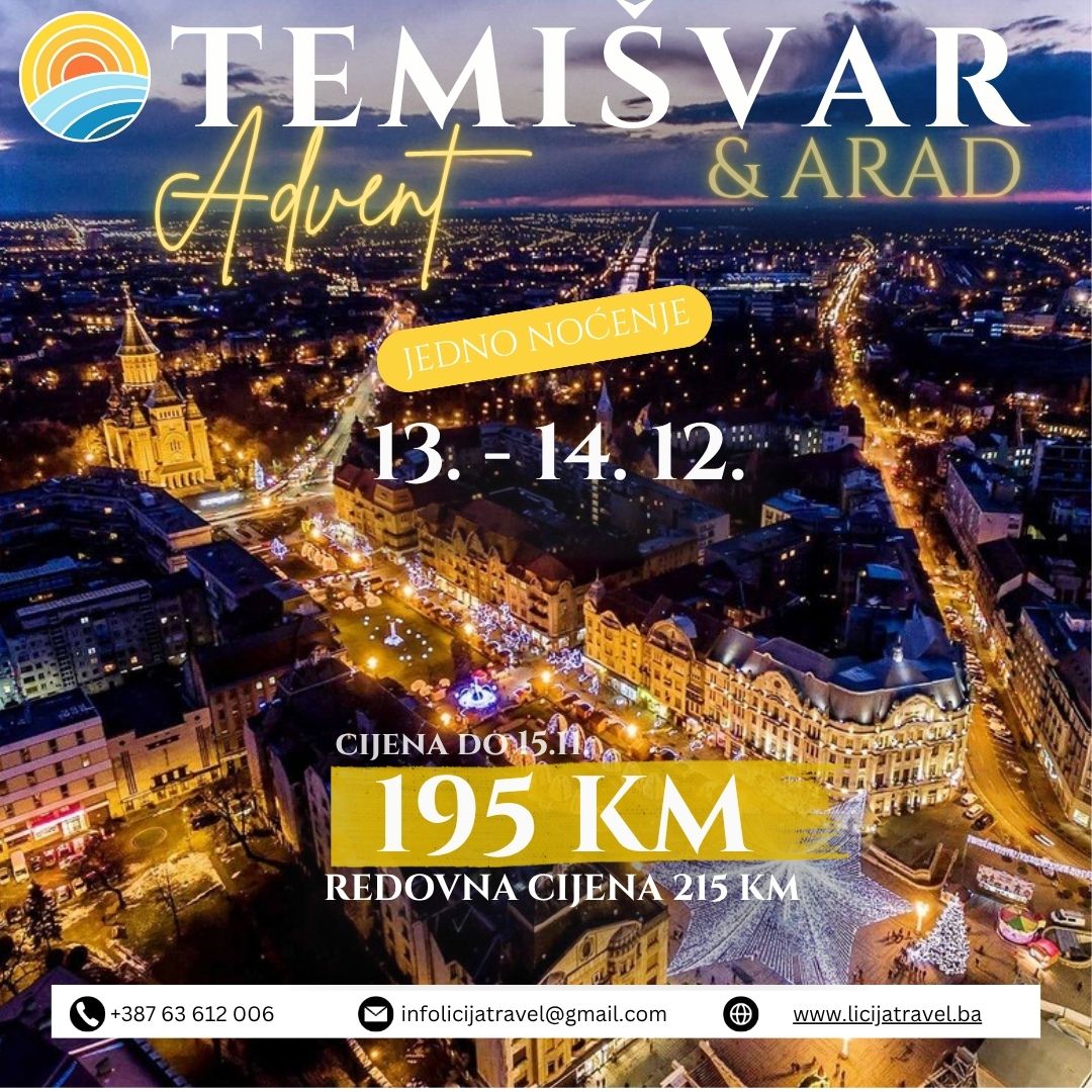 ADVENTSKO PUTOVANJE 2 DANA / 1 NOĆENJE TERMIN POLASKA: 13.12.2025. – 14.12.2025. Temišvar – često nazivaju Mali Beč a to ime nimalo ne iznenađuje jer se, zaista, austrijski uticaji osjećaju u svim aspektima kuture ovog grada. Grad opisuje austrijska arhitektura, prije svega, i način na koji je grad povezan između raskošnih trgova, kao i pješačka…