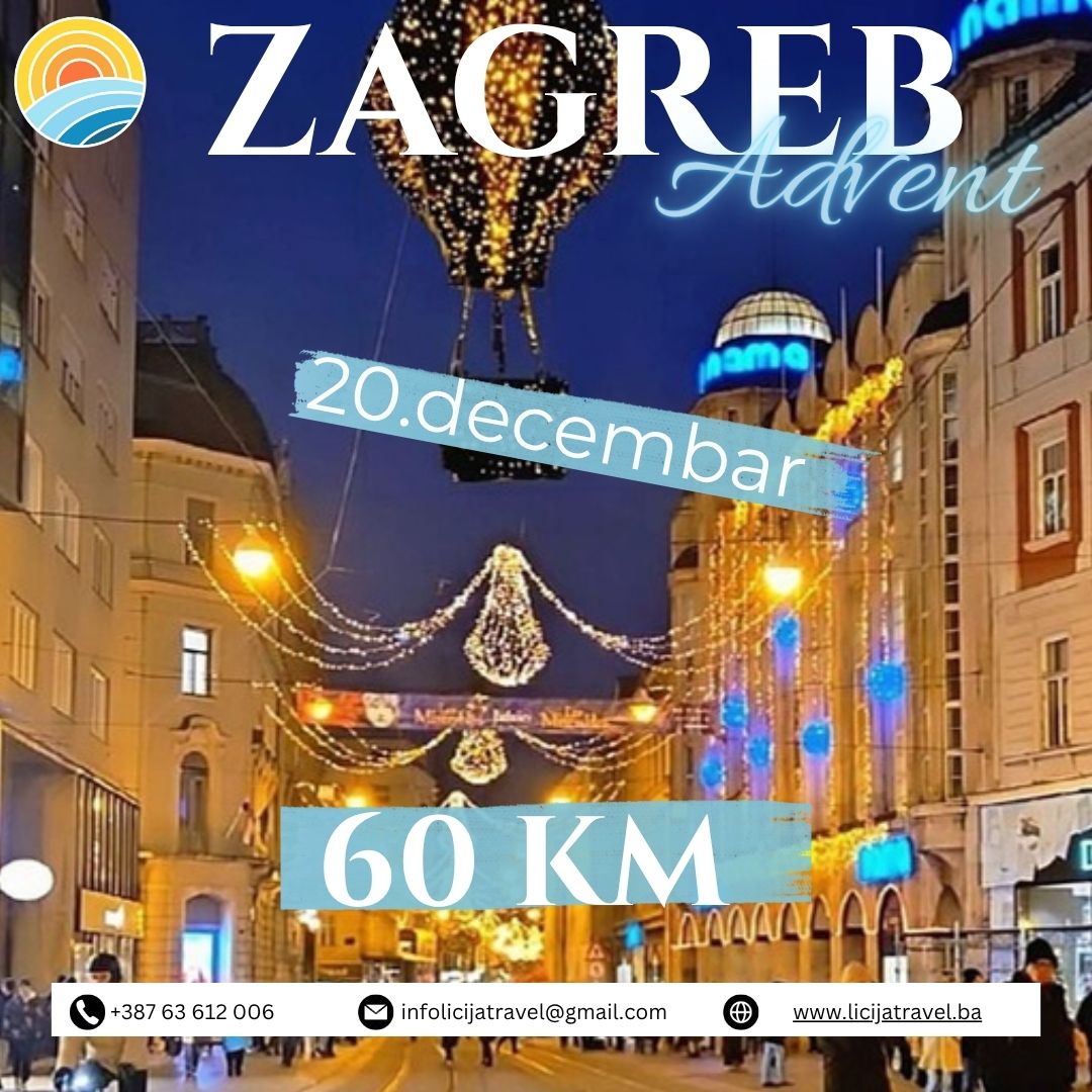 20.12.2025. / JEDNODNEVNI IZLET PROGRAM PUTOVANJA Polazak iz Banovića u 05:30h, Živinice 05:45h, Tuzla 06:00h, Lukavac 06:15 h..Vožnja preko Srebrenika, Brčkog, Orašja i Sl.Broda do Zagreba. Dolazak u Zagreb oko 11:00 h. Odlazak u shopping centar “Arena”. Slobodno vrijeme za shopping te polazak u centar grada u 15:00 sati. Odlazimo u centar grada na Adventski…