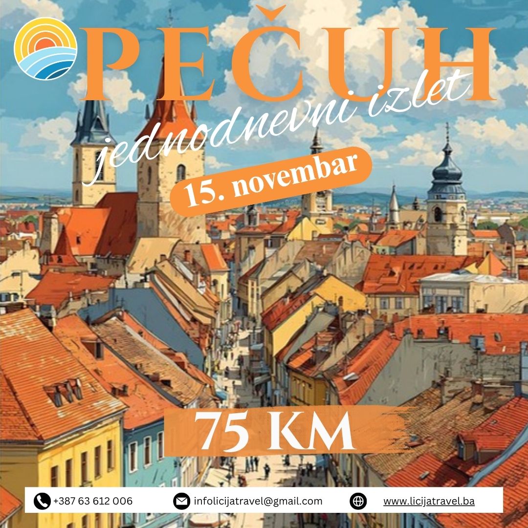 Jednodnevni izlet POLAZAK: 15.11.2025. Pečuh je jedan od najstarijih gradova čija historija doseže u davni drugi vijek, kada su Rimljani osnovali grad Sopianæ, a pod ovim imenom Pečuh se prvi put pominje 1235. godine. Zahvaljujući veoma bogatoj historiji, utjecaju različitih civilizacija i kultura, Pečuh je jedan od najuzbudljivijih gradova u Mađarskoj. Historija Pečuha danas živi…