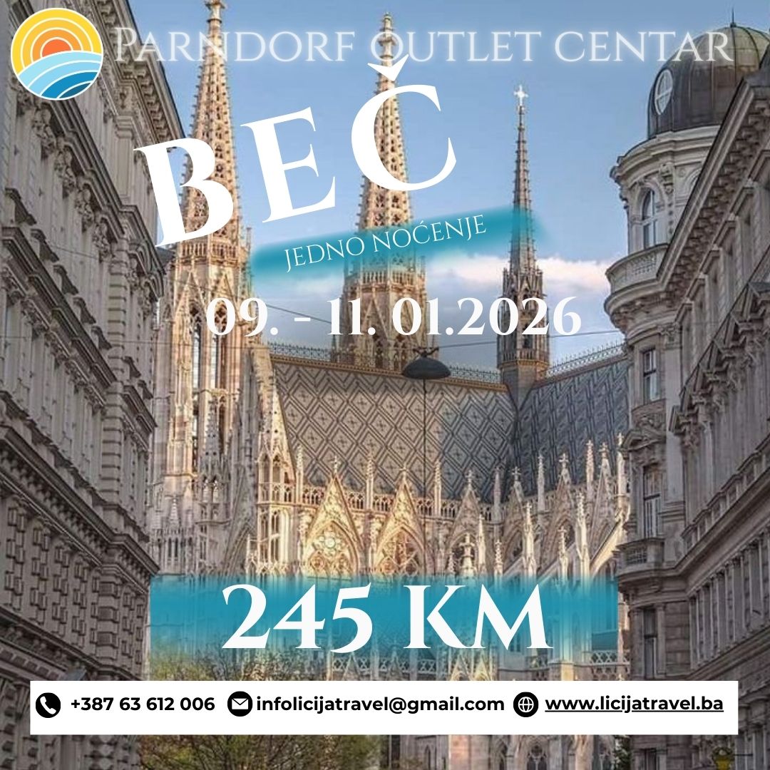 PROGRAM PUTOVANJA CITY BREAK U JANUARU BEČ i Parndorf Polazak: 09.01.2026. Povratak: 11.01.2026. PROGRAM PUTOVANJA 1.dan (Petak, 09.01.2026.) BiH-HR Polazak iz Sarajeva sa platoa željezničke stanice u 20:00 sati. Polazak iz Tuzle ispred hotela Tuzla u 23:00 sata. Noćna vožnja pored Osijeka, Gyora i Budimpešte sa pauzama po potrebi grupe. 2.dan (Subota, 10.01.2026.) PARNDORF-BEČ (ŠENBRUN+NOĆNA…