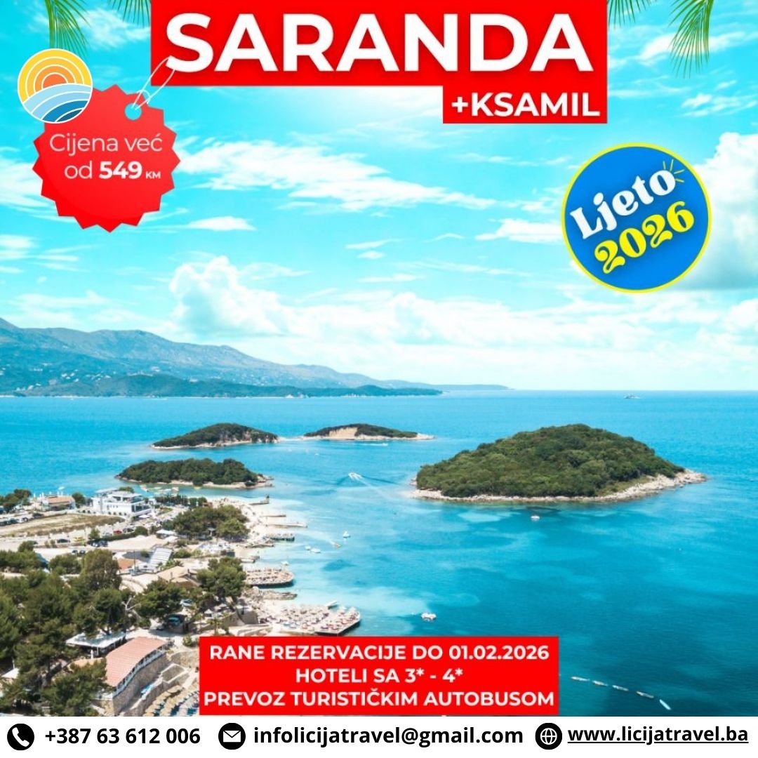 PROGRAM PUTOVANJA ALBANIJA LJETO 2026. RANI BOOKING DO 01.02.2026. Grad Saranda koji se nalazi na samom ulazu u južni dio Albanije na prelijepoj poziciji okružen morem i planinama. Prelijepa šljunkovita plaža na svom horizontu se ogleda sa sjevernim dijelom ostrva Krf i mjesta Kassiopi, Saranda ima izraženu mediteransku klimu i jako toplu morsku vodu sa…