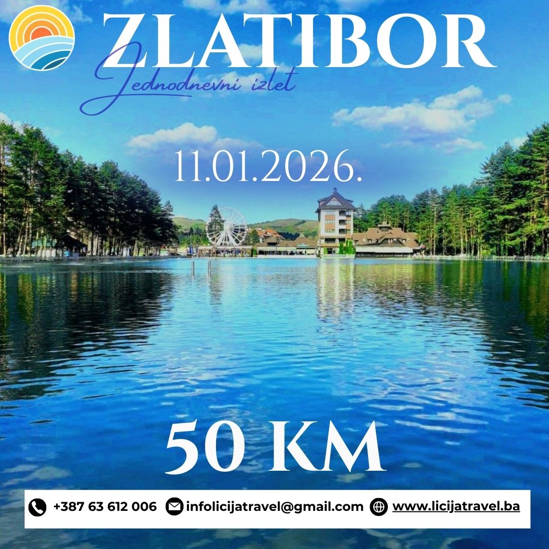 Polazak: 11.01.2026. PROGRAM PUTOVANjA: Polazak grupe u 06:00H iz Lukavca (Teniski Centar), Banovići 06:50H( Glavna AS), 07:15 H iz Tuzle (Hotel Tuzla)Vožnja turističkim autobusom na relaciji Lukavac – Banovići – Tuzla – Zvornik – Zlatibor. Dolazak na Zlatibor u prijepodnevnim satima.Zlatibor je sasvim sigurno jedna od najljepših planina u Srbiji. Ukoliko žudite za nevjerovatno lijepim pejzažima,…