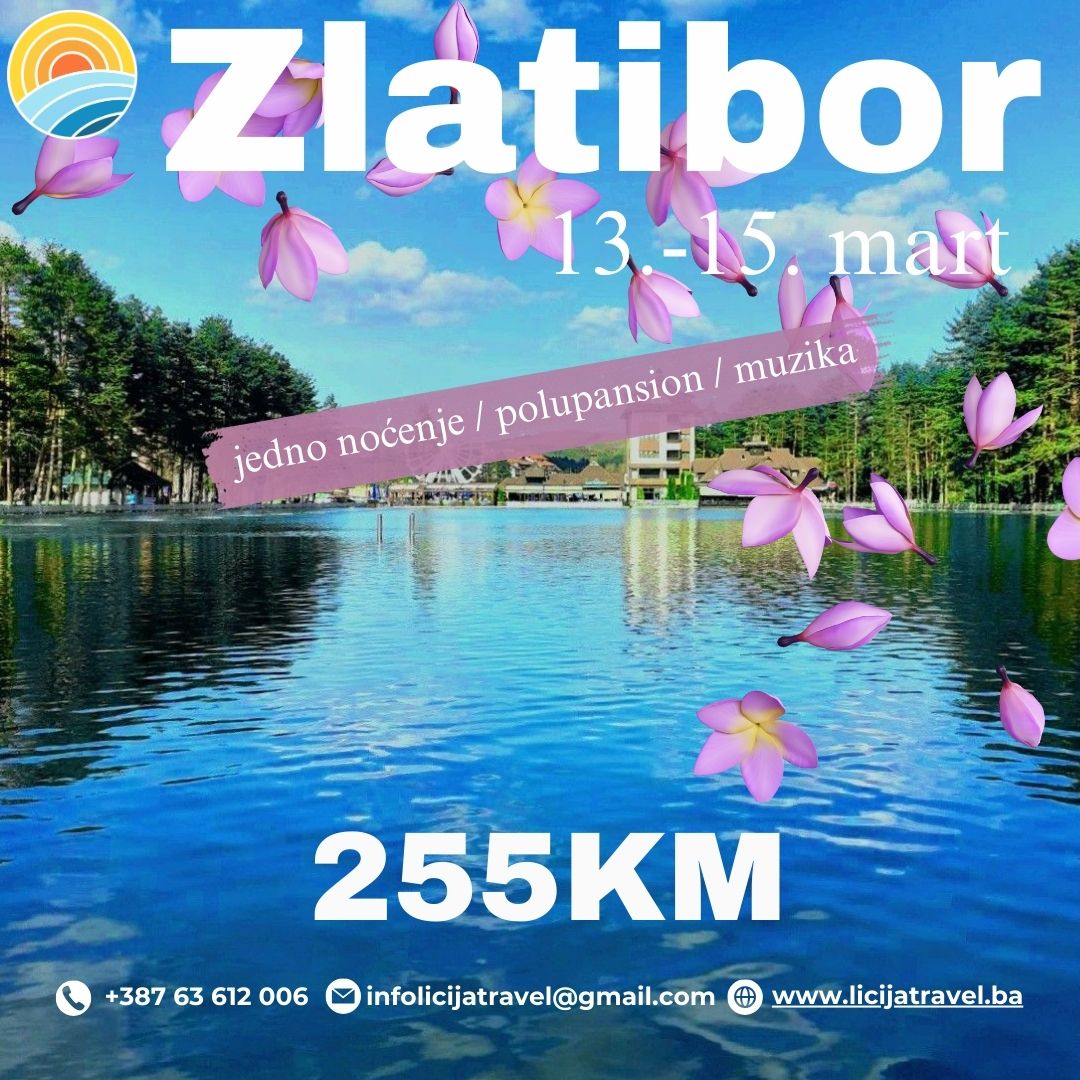 ZLATIBOR13.03.2026. – 15.03.2026. PROGRAM PUTOVANjA: 1. DAN 13.03.2026. (Petak) BiH – ZLATIBORPolazak grupe u 07:30H iz Lukavca (Teniski centar Bajra) ; 08:00H iz Tuzle (Hotel Tuzla)Vožnja modernim turističkim autobusom na relaciji Lukavac – Tuzla – Zvornik – Zlatibor.Dolazak na Zlatibor u popodnevnim satima, smještaj, slobodno vrijeme.. U večernjim satima organizujemo svečanu večeru sa muzikom uživo.…