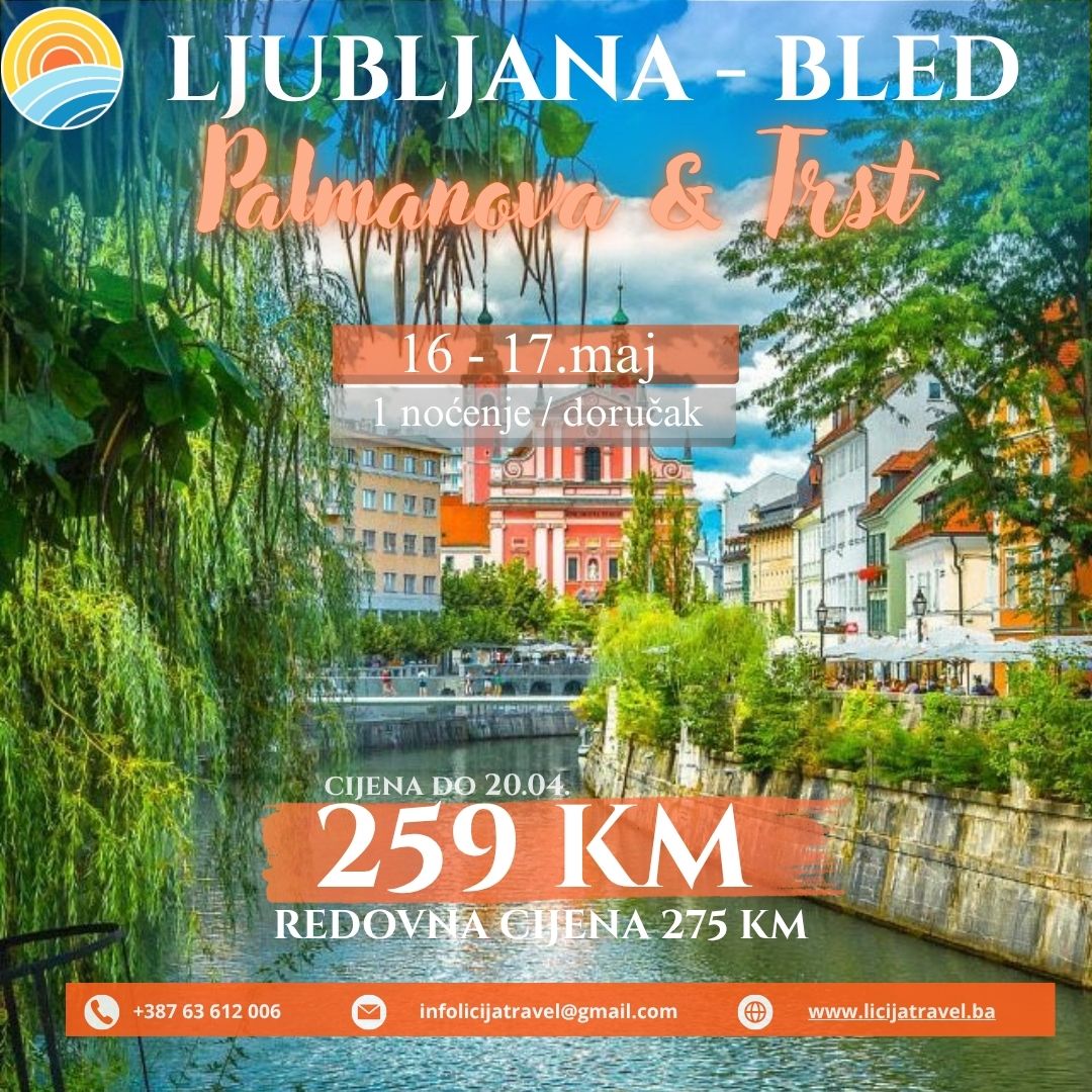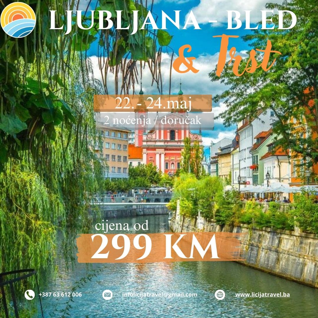 POLAZAK: 22.05.2026. POVRATAK: 24.05.2026. PROGRAM PUTOVANJA 1.dan (Četvrtak/Petak 22.05.2026.) BiH-HR-SLO – LJUBLJANA Polazak iz Banovića u 01:00h, iz Živinica u 01:20 h, iz Tuzle ispred BCC u 02:00 sata. Putovanje prema graničnom prelazu sa republikom Hrvatskom uz povremena zaustavljanja radi ulaska putnika. Prelazak granice. Vožnja u pravcu Slovenije i dolazak u Ljubljanu u jutarnjim…