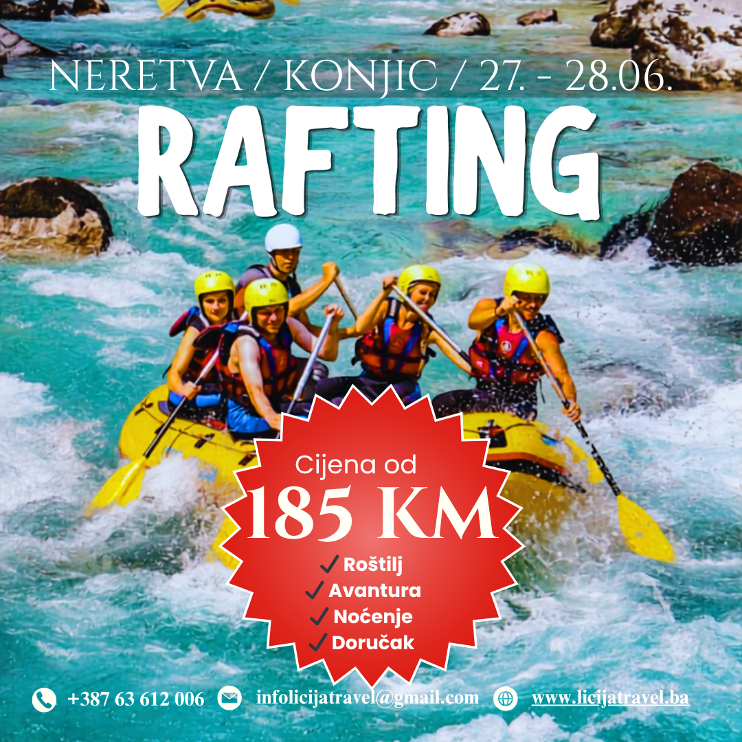 POLAZAK: 27.06.2026. POVRATAK: 28.06.2026. *RAFTING ZA SVE VAS KOJI VOLITE AVANTURU I DOBRU ZABAVU Rafting je vrlo avanturistička aktivnost i jedan od najpopularnijih oblikaaktivnog odmora u Konjicu, koji otvara izazove divljih voda kako početnicimatako i iskusnim rafterima. Smještena u jednoj od najidiličnijih regija u zemlji,rijeka Neretva je zapanjujuća, rijeka klase II-III.Rafting na divljim vodama zahtjevan…